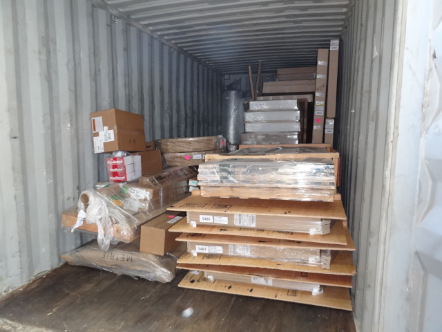 16 フィートのモールディングや 14 フィートのガレージドアがあったので、20 フィートのコンテナの半分はこの 点で埋まってしまいました。