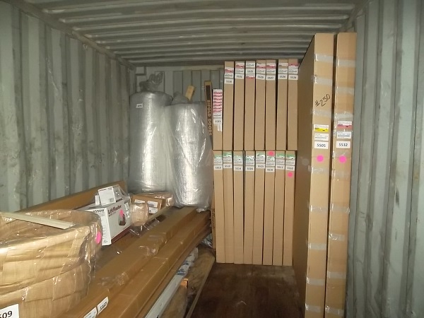 主な荷物はトリプル省エネ樹脂サッシ、内外ドア、ガレージドア、モールディング、ドライウォール、ファイポン、電気スイッチ、遮熱材等です。
